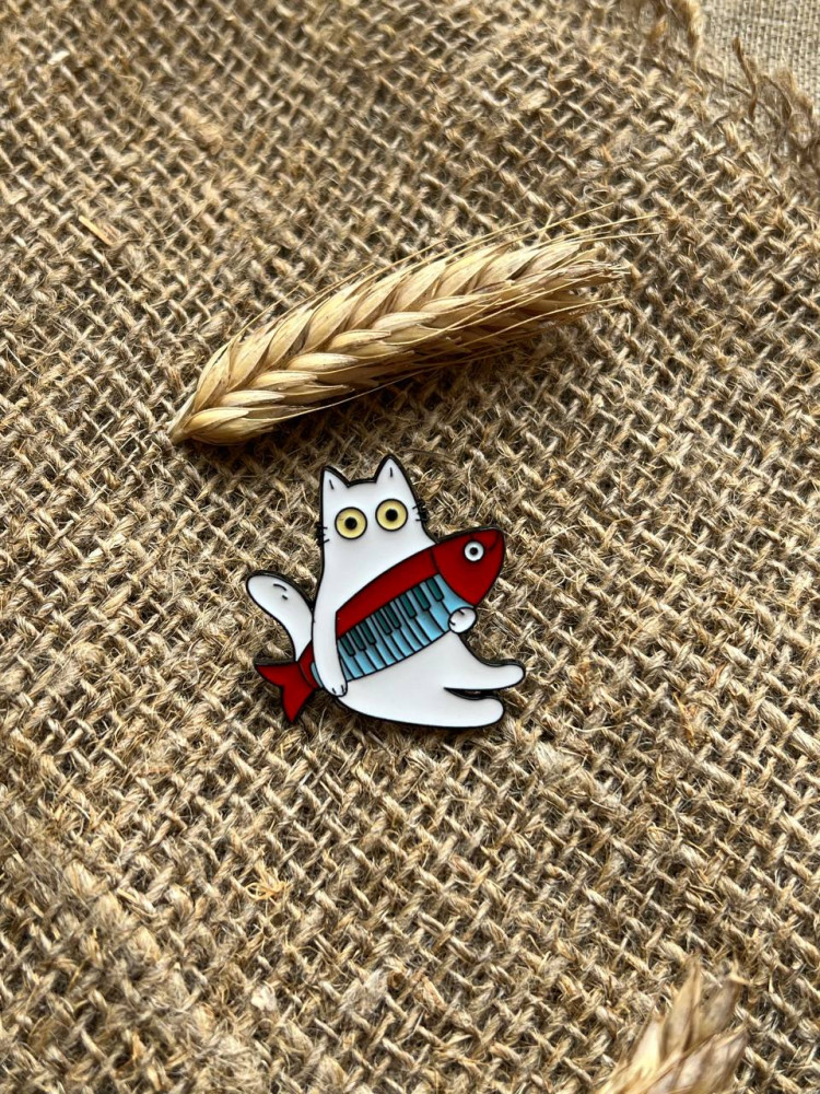 Металічны пін "Кот-клавішнік" - гэта выдатны сувенір для аматараў фартэпіяна. Мілы кот з велічэзнымі вачыма, што іграе на рыба-сінтэзатары ідэальна размесціцца на вопратцы ці любой торбачцы і будзе радаваць уладальніка ці ўладальніцу сваім выглядам. Памер значка - 3х2 см.