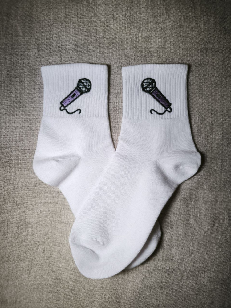 Бавоўнавыя шкарпэткі Tactus з з якаснай вышыўкай музычных інструментаў - мікрафон. Памер універсальны (37-43).