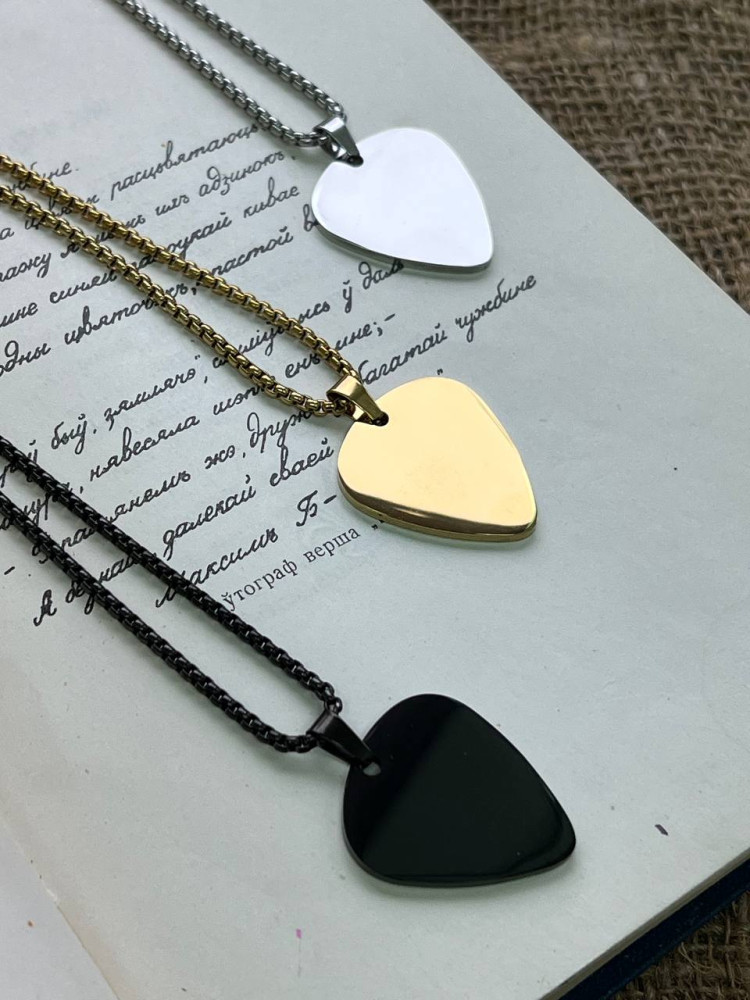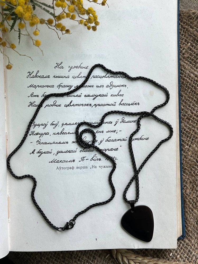 Металічны кулон "Гітара" чорнага колеру выраблены з нержавеючай сталі, мае памер 2х3х0.2 см. і размяшчаецца на ланцугу даўжынёй 68 см. Такі кулон будзе прыемным падарункам выканаўцам на гітары, дапоўніць як штодзёны так і канцэртны вобраз. Калі жадаеце зрабіць прыемны сюрпрыз свайму сябру, настаўніку, навучэнцу ці іншаму блізкаму чалавеку - кулон "Медыятар" стане ідэальным выбарам!